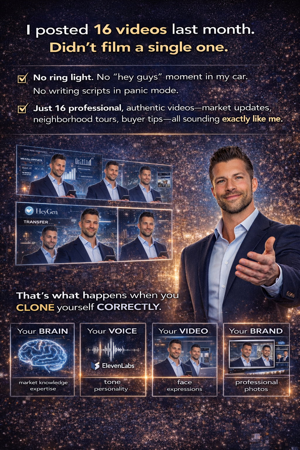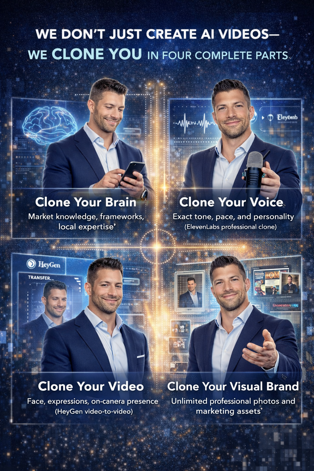 This isn't about AI videos. It's about cloning ALL of you — your expertise, your voice, your face, your brand — so your content is indistinguishable from the real thing.